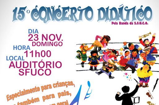 Este ano será a 15º Concerto Didático e realizar-se-á no auditório da sede, Rua Alferes Santos Sasso na Freguesia de Olivais / Lisboa (Junto á Piscina Municipal dos Olivais).