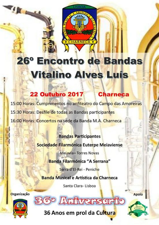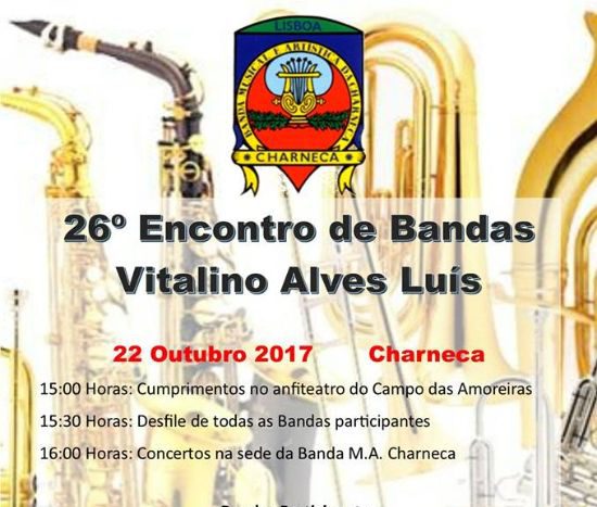 A Banda Musical e Artística da Charneca apresenta o seu Encontro de Bandas que será realizado no próximo domingo dia 22 de outubro.