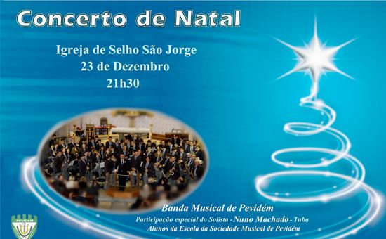 A Sociedade Musical de Pevidém realiza o seu Concerto de Natal no próximo dia 23 de Dezembro pelas 21:30h, na Igreja de Selho São Jorge com a participação Especial do Solista – Nuno Machado (Tuba) e dos alunos da Escola da Sociedade Musical de Pevidém.