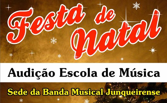 Festa de Natal da Escola de Musica “Manuel Joaquim de Almeida” inserida na Audição de Final de Período, a realizar no próximo dia 15 de Dezembro(Domingo), pelas 15:30h na Sede da Banda Musical Junqueirense.